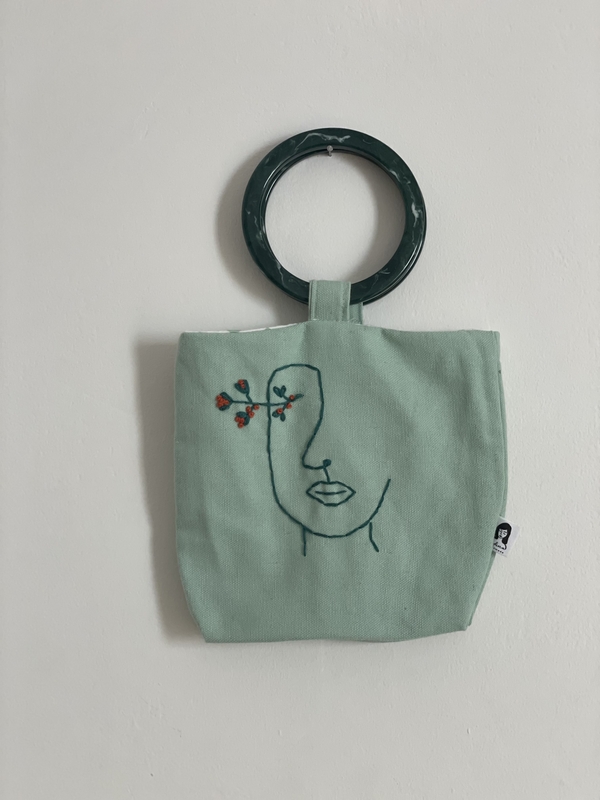 על התיק רקמה בעבודת יד