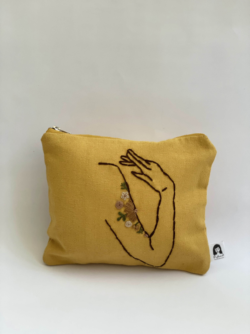 על התיק רקמה בעבודת יד